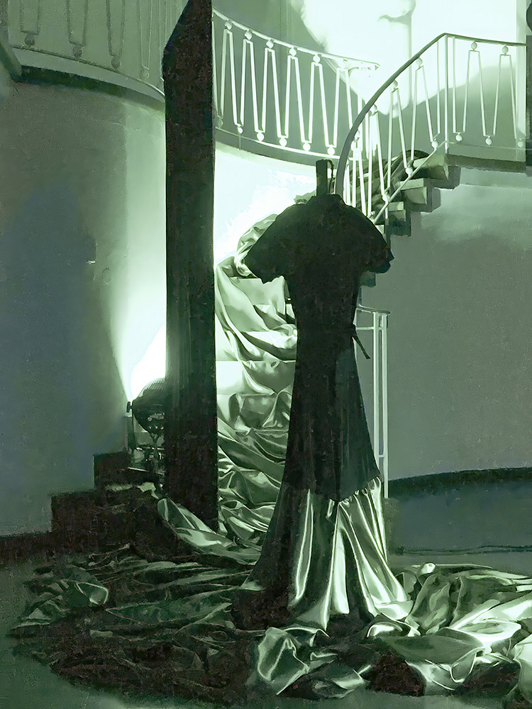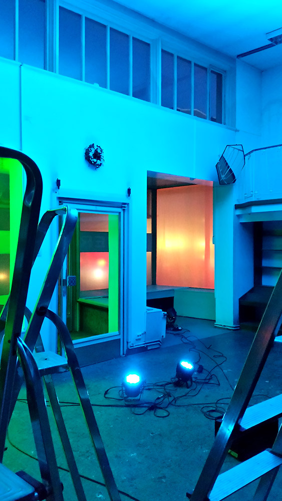 Eine Tanzszene entstand. Drehbewegungen in wechselnder Kleidung der damaligen Mode durch Licht in Szene gesetzt und untermalt von einer von Peglow zusammengestellten Klangcollage. So wandelt sich Sicht und Gefühl: vom beschwingt Aufmüpfigen ins Beengende. Stellvertretend für die Außenstehenden, für die durch die Schaufenster die Szene betrachtenden Zuschauer, steht am Rande des Geschehens ein auf den Tanz ausgerichteter Sessel mit Tischchen und Stehlampe. Auf ihm könnte jederzeit ein imaginärer Besucher, dem der Zutritt nun einmal leider verwehrt ist, Platz nehmen.