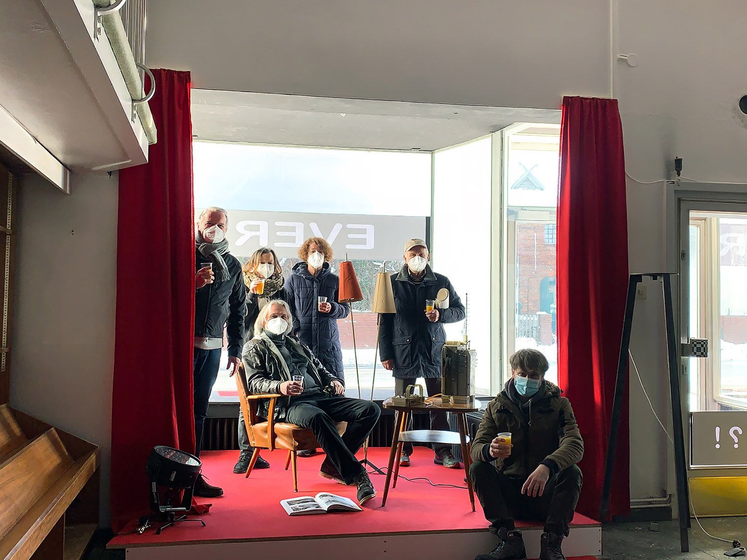 Eine „normale“ Ausstellung im Gebäude vor Publikum, mit Vernissage und Finisage, mit Worten, Schnittchen und Getränken war in Zeiten von Corona nicht vorstellbar. Die Lösung allerdings lag in der Architektur des Gebäudes, im Zuschnitt der Räume, den Sichtachsen durch die Schaufenster selbst in hinterste Ecken der früheren Buchhandlung.